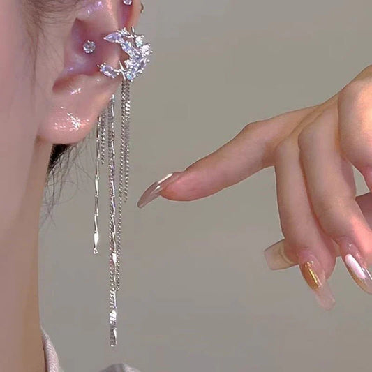 Fashion Elegant Zircon Awn Star Moon Tassel Non-piercing Ear Clip