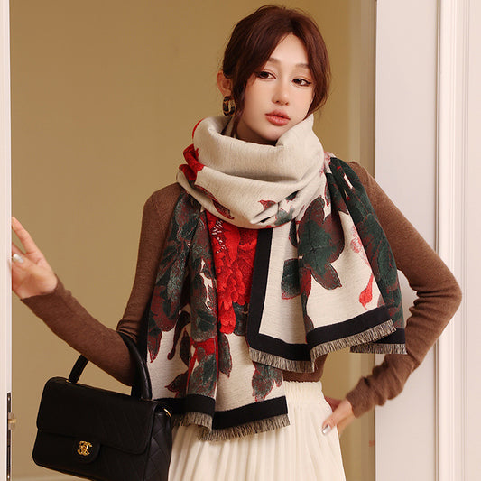 Retro Floral Artificial Cashmere Scarf